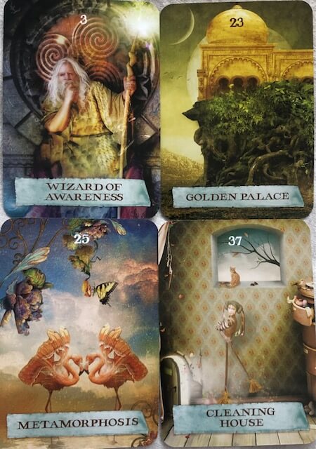 4) Metamorphosis (25): "You are in the process of deep and beautiful change." Muutosprosessi tuntuu kivuliaalta, koska siihen kuuluu menetyksiä ja luopumista. Osan Sinusta on kuoltava, jotta muutos voi tapahtua. Irtipäästäminen on vaikeaa etenkin silloin, jos on pitkälti kuvitellut elämänsä tietynlaiseksi. Ehkä joudut luopumaan huonosta itsetunnosta, johon olet kovin tottunut? Tai unelmasta, joka yhtäkkiä ei enää palvelekaan Sinua? Tai ihmissuhteesta, joka on tullut elinkaarensa päähän? Huolimatta pelostasi, jota tunnet muutosta kohtaan, hyväksy, että NYT on Muutoksen Aika. Tulet rakastamaan lopputulosta!